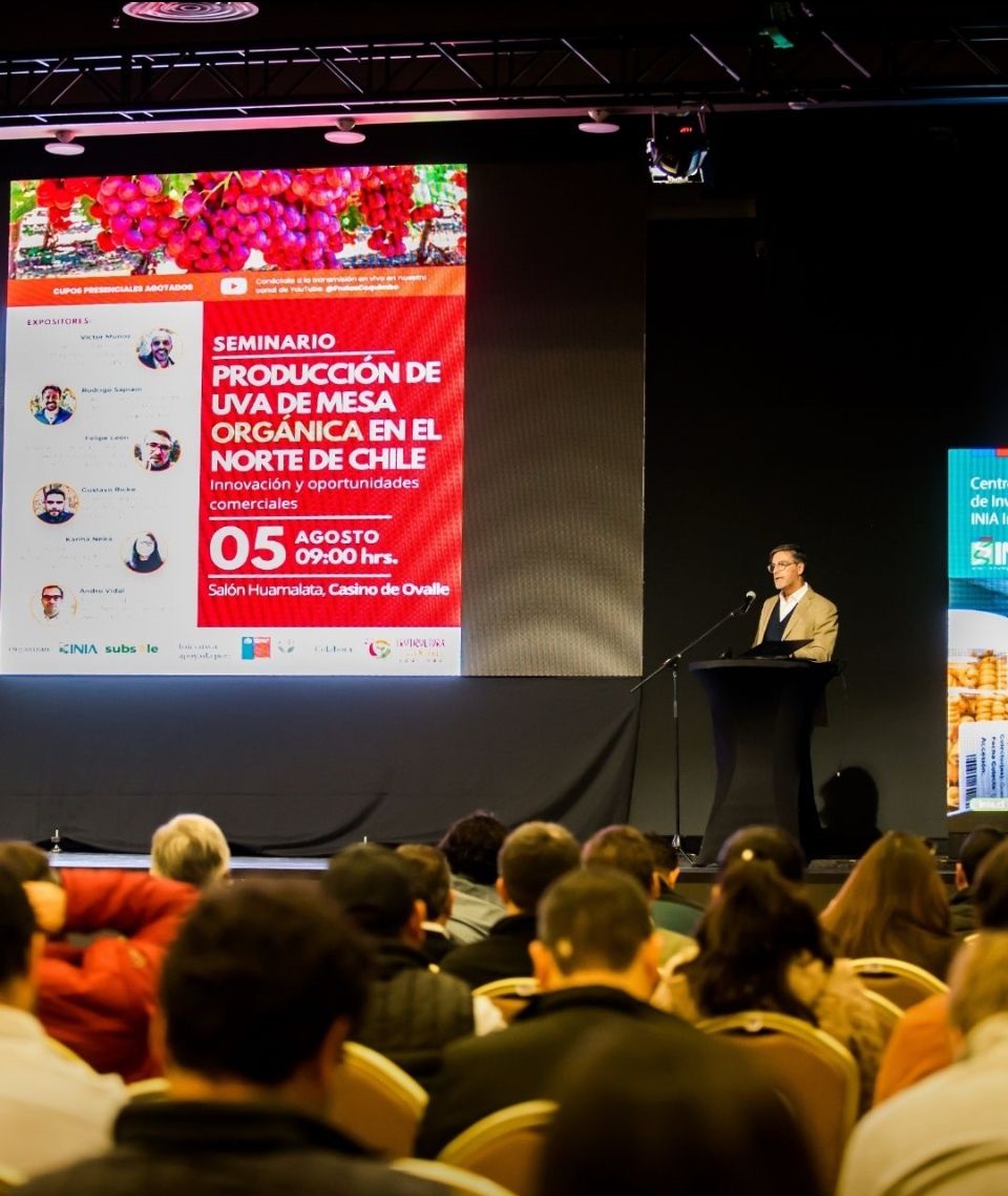 Agosto 25, 2025El pasado martes 5 de agosto participamos activamente en el seminario “Producción de Uva de Mesa Orgánica en el Norte de Chile”, realizado en la ciudad de Ovalle y organizado por INIA y Exportadora Subsole, con el apoyo de FIA, Corfo y Frutas de Chile.
